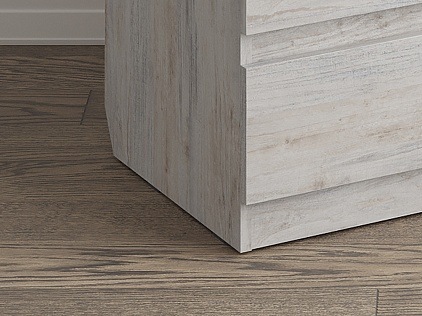 Благодаря скосу под плинтус зазор между стеной будет минимальным.